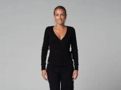 – De chaque côté du buste, une bande de tissu côtelé a été ajoutée pour une plus grande aisance dans les postures.
