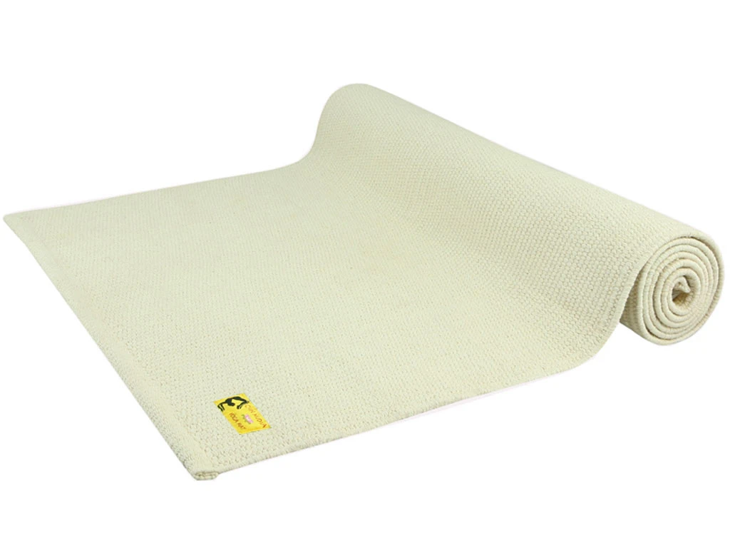 • 1 tapis de yoga Taj coton Bio Sans Caoutchouc. Tapis de yoga traditionnel, fait à la main sur métier à tisser. (Dimension: 190cm~200cm x 65cm x 5mm)