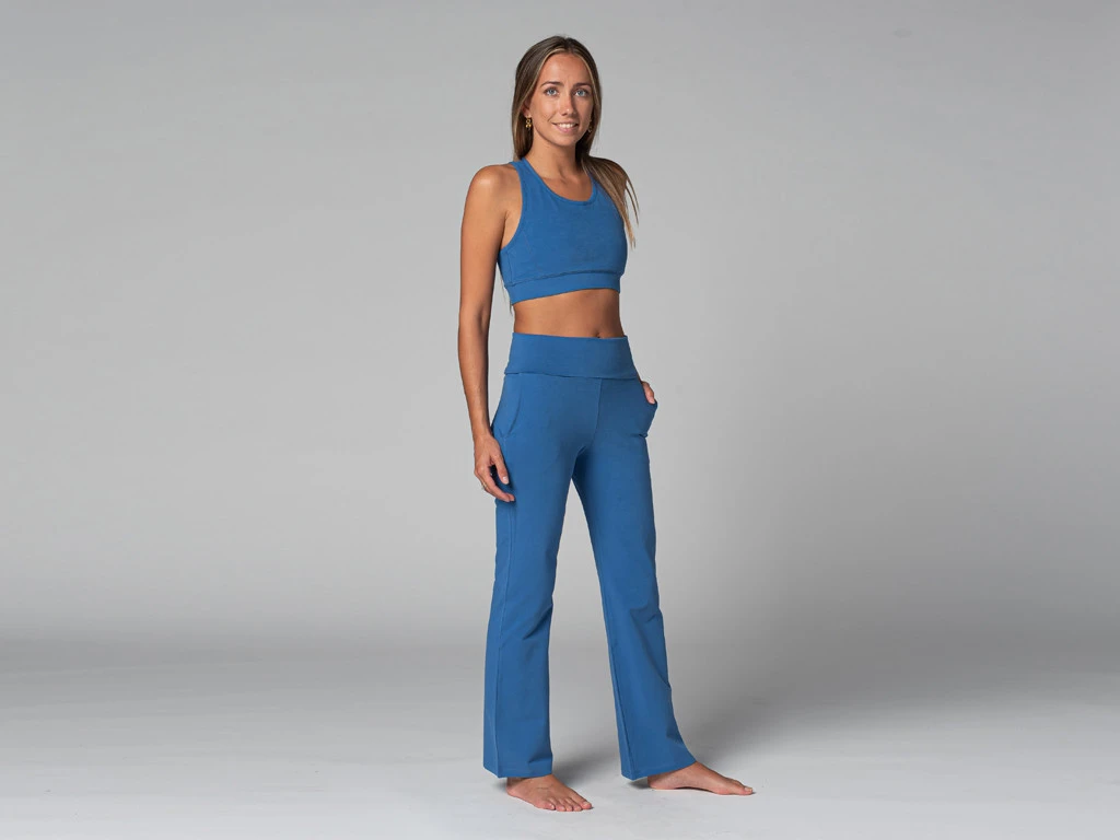 Pantalon de Yoga Confort. Très confortable grâce au coton bio 280grs utilisé par Chin Mudra, ses fibres longues donnent au pantalon une douceur au toucher et un confort incomparable.