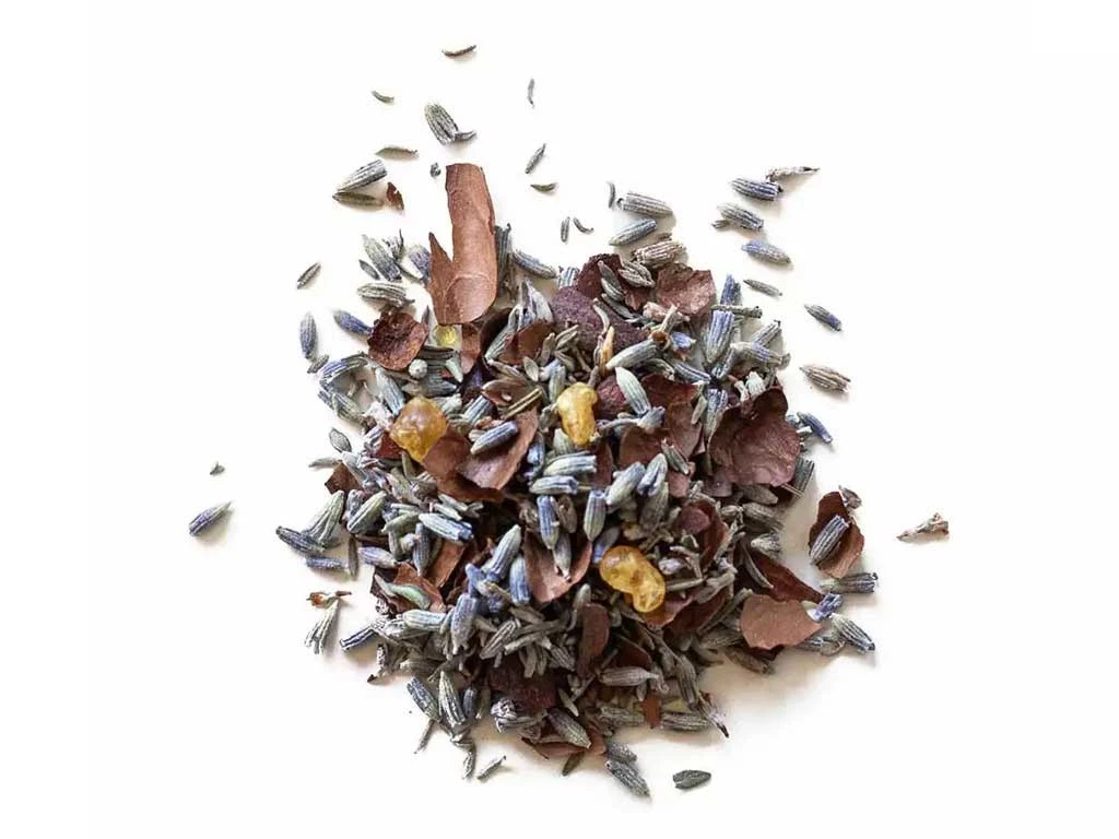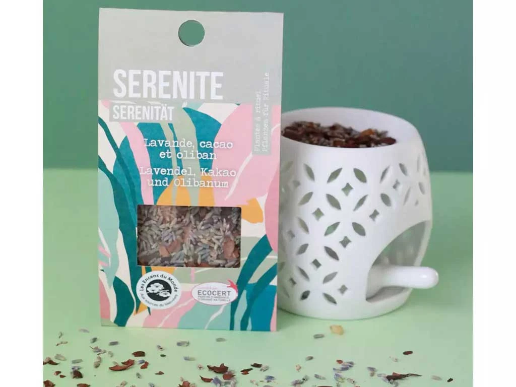 Des plantes à brûler constituées d’un apaisant mélange de lavandin, écorces de cacao, clous de girofle et résine d’oliban pour retrouver l’équilibre et la paix intérieure.