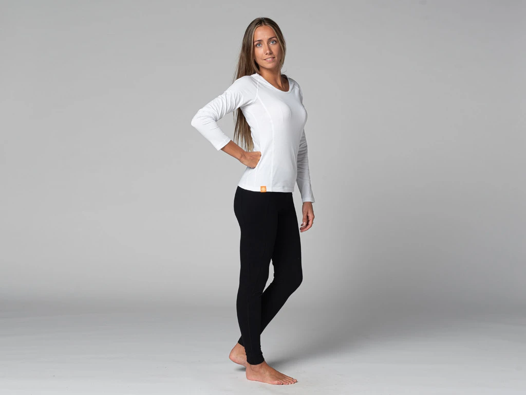 T-Shirt Tara, manches longues, col large, 95 % coton certifié biologique par OCS 100 (Organic Content Standard) et 5% Élasthanne.