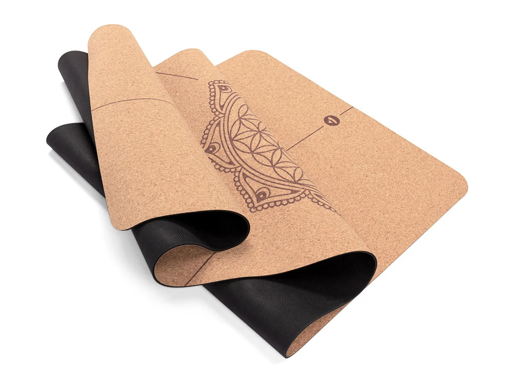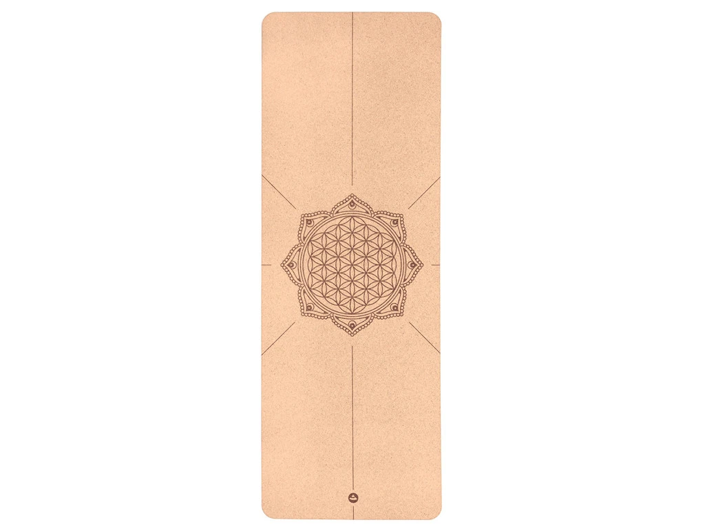 Magnifique tapis de yoga en liège avec impression « Fleur de vie » et aide à l’alignement