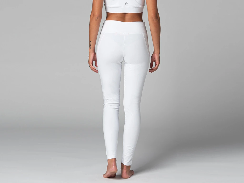 Chin Mudra, fidèle à sa réputation a fabriqué ce legging de yoga à partir d’un coton sergé peigné de haute qualité. En traitant le coton de cette manière, les fibres sont nettoyées et on obtient les fibres les plus longues et les plus résistantes, ce qui donne un fil de meilleure qualité.